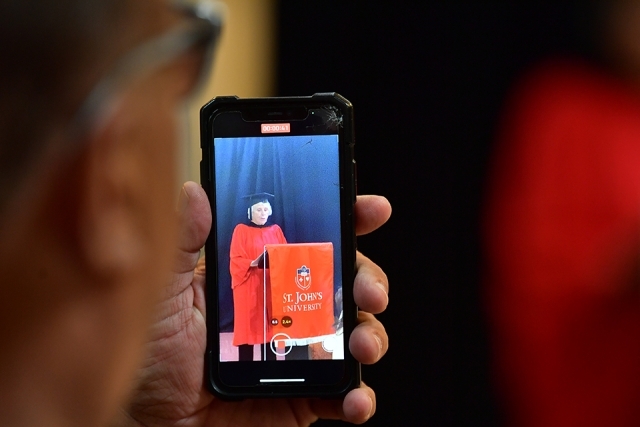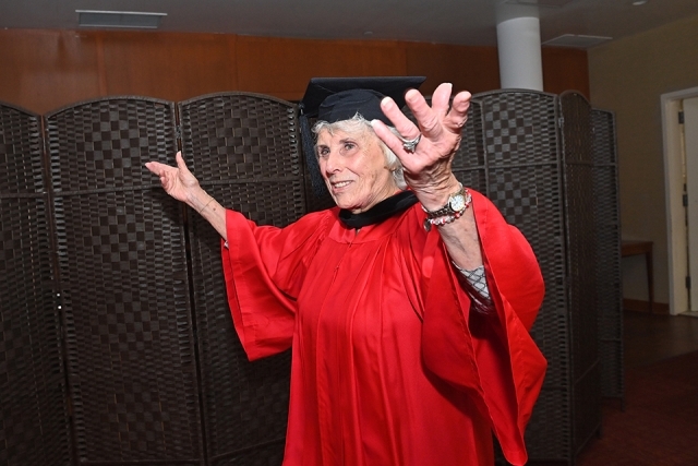 Before family, friends, and members of University administration, Ms. Ervolino recently was awarded an Associate in Arts degree from The Lesley H. and William L. Collins College of Professional Studies (CCPS). She began her studies at St. John’s Schermerhorn Street, Brooklyn, NY, campus in 1956 before withdrawing three years later to raise her family.
