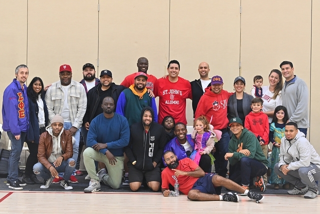 For the second time in the Homecoming Weekend’s history, the 3-on-3 Basketball Tournament welcomed alumni, students, and friends to Taffner Field House on the Queens campus on October 29 to support the fully endowed Sigma Phi Epsilon Rho, St. John’s University Balanced Leader Scholarship. DJ Zeke, also known as Ezekiel O. Akinyemi '08TCB, emceed the 3 on 3 basketball event.