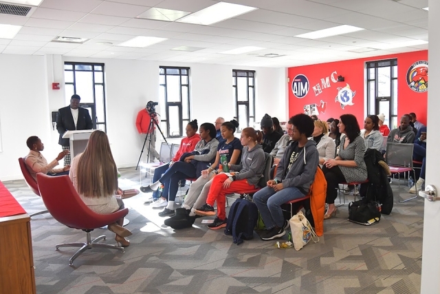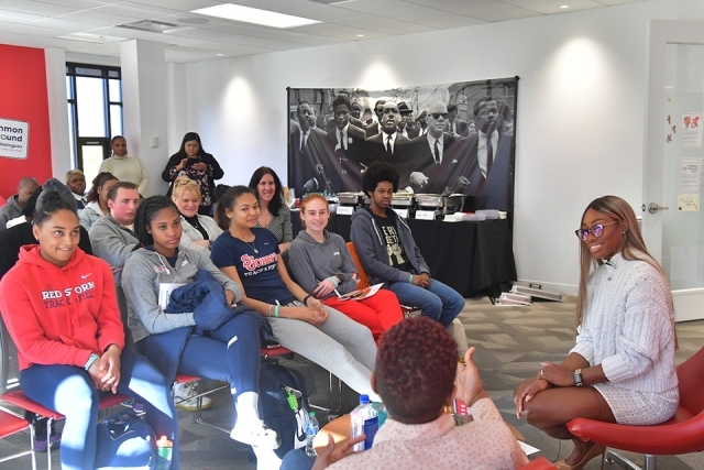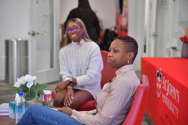 St. John’s Athletics Hall-of-Famer Priscilla Loomis ’11CPS, who competed in the 2016 Olympics for Antigua and Barbuda, joined Aliann Pompey, Director of the Red Storm Women’s Track and Field program and a four-time Olympian, on February 5 for a discussion titled “Journey to the Center of Success,” an examination of the elements needed to achieve on and off the playing field.