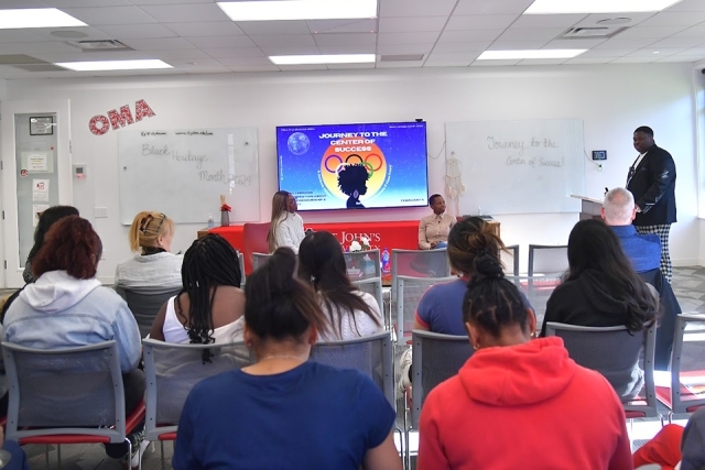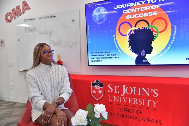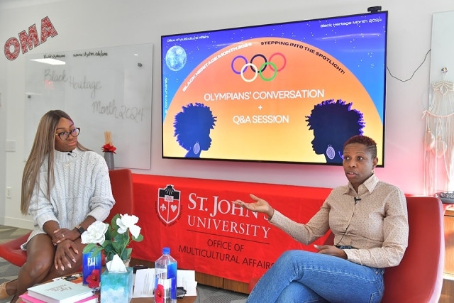 Two Olympians with ties to St. John’s University brought a career’s worth of wisdom to students eager to learn the secrets of success in a lecture sponsored by the Office of Multicultural Affairs and tied to Black History Month.