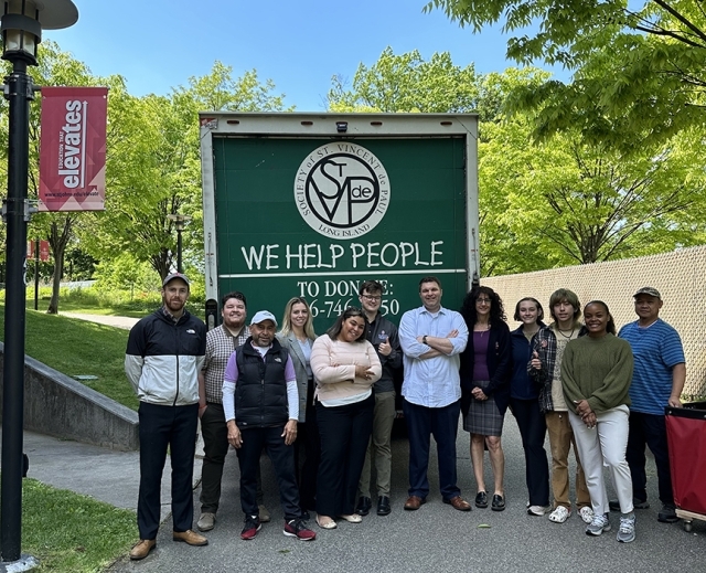 In cleaning out their residence hall rooms after the spring semester, students collected more than 2.5 metric tons of food, clothing, and household goods that were distributed to representatives of the Dax Program to support homeless students; St. John’s Bread & Life food pantry in Brooklyn, NY; and the Society of St. Vincent de Paul Long Island.