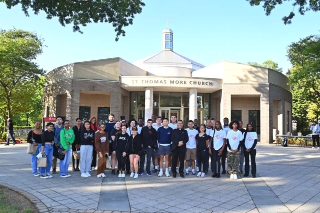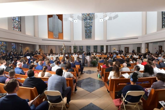 During the Mass, Rev. Brian J. Shanley, O.P., President of St. John’s, blessed the student leaders of various organizations, and Fr. Rooney told the assembly that their role was to “discover God’s will. Just as God has a plan for the individual, God has a plan for the organizations we lead.” The drive to base decisions on the will of God is what distinguishes Vincentian leaders, Fr. Rooney stressed.