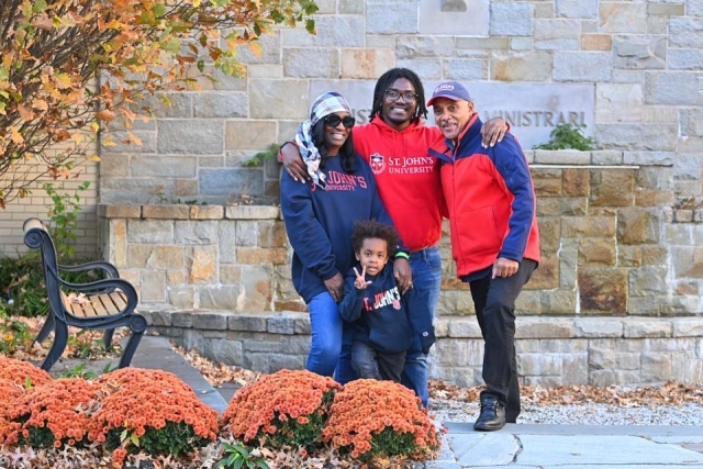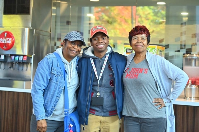 Branson Bailey, who is in his first year at St. John’s and is majoring in Legal Studies, left his home in Los Angeles, CA, to experience life on the East Coast, especially in New York City. “New York is so different from Los Angeles. I needed to spread my wings and St. John’s is a great place for doing that,” he said as he stood in Montgoris Hall near a dining table filled with family members. “It’s time for me to grow up and mature.”
