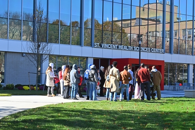 A distinctive highlight of special tours conducted throughout the day was St. Vincent Health Sciences Center, a new focal point of the Queens campus that opened at the start of the fall semester. “We are particularly excited to showcase our newest building to prospective students, the St. Vincent Health Sciences Center,” said Ms. Wright. “The many incredible features of this building allow our health sciences students to learn with the latest technology, supporting innovative health-care education training in a real-life clinical setting.”