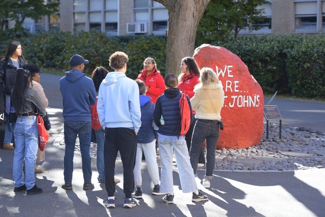 The University opened its doors to the entire campus, allowing prospective students to explore each of St. John’s six Schools and Colleges, dining facilities, and residence halls, either on their own, against the backdrop of some of the best views of the New York City skyline, or through guided tours led by current St. John’s students.