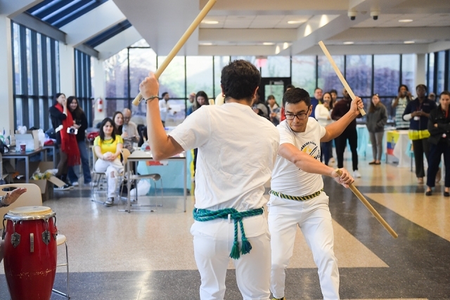 Students and volunteers also enjoyed a demonstration of the Brazilian martial art and dance form capoeira by the Queens-based Capoeira Terreiro da Lua troupe.