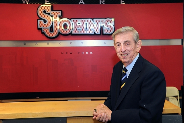 Nicholas “Nick” Vendikos ’91SVC, Senior Director of Athletic Development, first came to know Coach Carnesecca as a student journalist for the now-defunct St. John’s Today newspaper and later collaborated with him on Athletics Department fundraising events. “I was always amazed at the grace and kindness of Coach Carnesecca,” he said. “No matter how many people wanted to stop to tell a story or take a photo with him, he happily obliged—and Looie always made them feel like they were the only people in the room. He was the best we will ever see.”