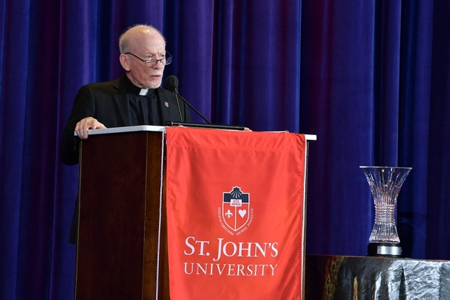 Earlier in the evening, Rev. Brian J. Shanley, O.P., President of St. John’s, in his opening remarks, referred to GSRM as “one of the crown jewels of our University.” He thanked Mr. DeCarlo and all the attendees for their time, talent, and treasure throughout the year.