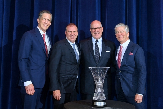 Demonstrating that pledge to cultivate stronger partnerships, Mr. DeCarlo shared: “I’m pleased to announce that in the interest of making a lasting difference well beyond tonight’s event, a group of us have banded together to establish a special gift to the School—the Amwins Industry Leadership Endowment—which will serve to support in perpetuity activities that keep the School fully engaged with industry; preserve its robust Board of Overseers and Executive Advisory and Alumni Councils; and assure that students get the best possible insurance industry experience during their studies.”