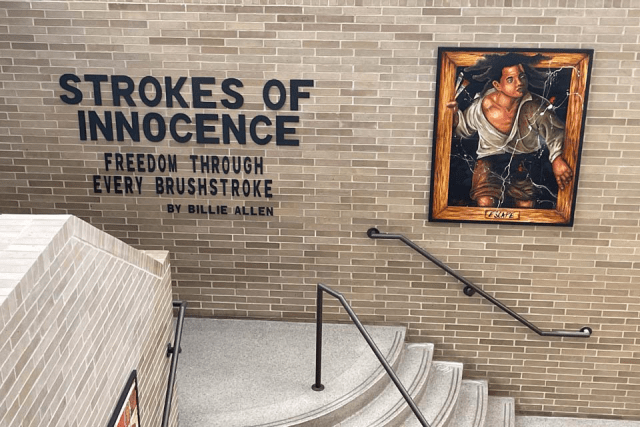 Through his work, Allen provides a deeply personal and emotional look at wrongful convictions, the psychological toll of incarceration, and the resilience of the human spirit. More than 20 original pieces were unveiled at the opening night event on February 26, featuring a short documentary screening and a panel discussion with legal experts and criminal justice reform advocates.