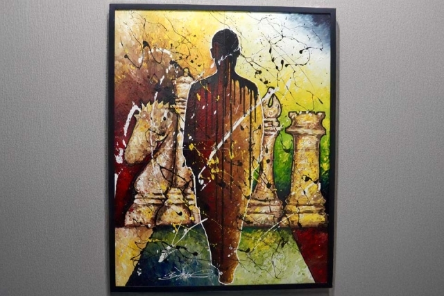 The night’s discussions centered on the role of art in amplifying the voices of justice-impacted individuals. As attendees moved through the exhibition, Allen’s work invited them to witness not just the pain of wrongful conviction, but also resilience and resistance. His paintings, which combine elements of Afrofuturism, personal storytelling, and social commentary, serve as both an act of defiance and a means of survival.