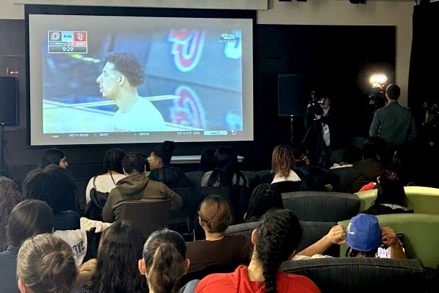 The March 20 watch party was the second of the week for St. John’s students, who also gathered on March 16 for the NCAA Tournament Selection Show, where the Red Storm learned they were heading to Providence, RI, to play Omaha. A similar watch party is planned for the Saturday, March 22, game against 10th-seeded Arkansas.