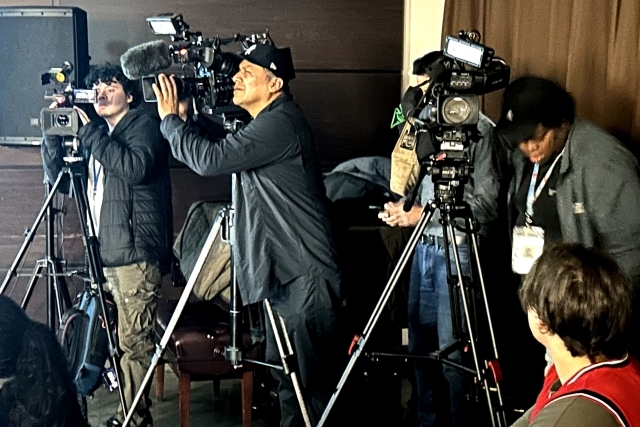News crews from local television stations were present throughout the broadcast to capture the enthusiasm. CBS2 NY broadcast live from the D’Angelo Center during the postgame with the St. John’s victory as the lead story of the late night news.