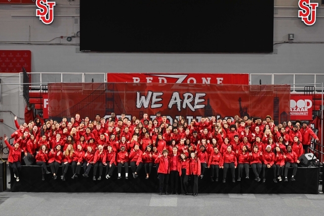 The pep rally also featured performances by the St. John’s Pep Band, Dance Team, Kickline Team, and Cheerleading Team.