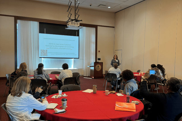 The ADHD Executive Function Workshop was led by Bonni S. Cohen, Ed.D., a nationally recognized ADHD parent coach and teacher trainer. Drawing on her expertise in supporting neurodiverse learners, Dr. Cohen engaged participants in an interactive session exploring the connection between ADHD and executive function skills—key cognitive processes that influence students’ learning, behavior, and motivation.
