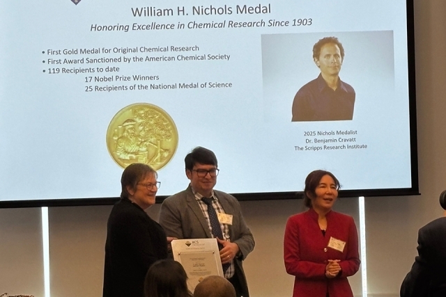 The 2025 Nichols Medalist was Benjamin F. Cravatt, Ph.D., Professor and Norton B. Gilula Chair in Biology and Chemistry, Department of Chemistry, Scripps Research, who delivered the keynote address, “Activity-Based Protein Profiling—Target and Ligand Discovery on a Global Scale.” The symposium’s theme, “Advancing Biology Through Innovations in Chemistry,” brought together leading researchers in the field, including Stavroula Hatzios, Ph.D., Associate Professor of Molecular, Cellular, and Developmental Biology and of Chemistry, Yale University; Tom W. Muir, Ph.D., Professor, Department of Chemistry, Princeton University; and Damian Young, Ph.D., Assistant Professor, Pharmacology and Chemical Biology, Baylor College of Medicine.