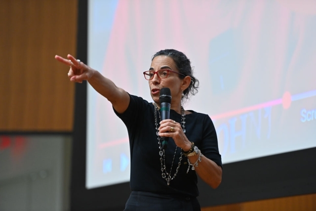 Teresa Delgado, Ph.D., Dean and Professor, Theology and Religious Studies, St. John’s College of Liberal Arts and Sciences, was the faculty keynote speaker for all student orientation sessions.