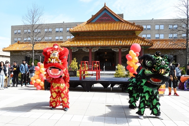 Designed by architects John S. Lynn of Taiwan, Japan, and Herman C. Knelbel of Westbury, NY, the hall features traditional Asian architecture that distinctively sets it apart from other buildings on campus. Highlights of the octagonal-shaped building include a raised roof constructed with glazed yellow tiles imported from Taiwan, an expansive hall that features green marble, and a white marble terrace.