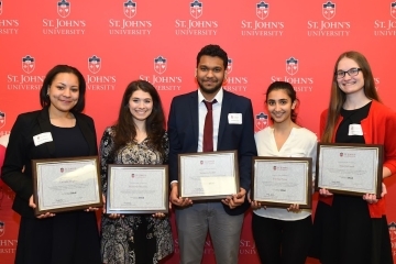 Sixty invited guests—including student worker honorees; their supervisors and managers; Conrado “Bobby” Gempesaw, Ph.D., President of St. John’s University; and other University leaders—attended the University’s third annual Students Honored in Employment (SHinE) Awards Luncheon hosted by the Office of Human Resources on April 6, 2017.
