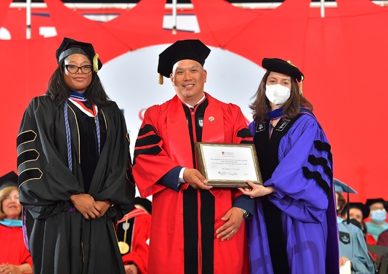 Dr. Cortes graduated with a Doctor of Education degree in Administration and Supervision at The School of Education Commencement ceremony on May 17. For his dissertation, “The Stereotype Threat Experiences of Men of Color Persisting at Community College,” he explored factors affecting the graduation, persistence, and retention rates of men of color attending community college.