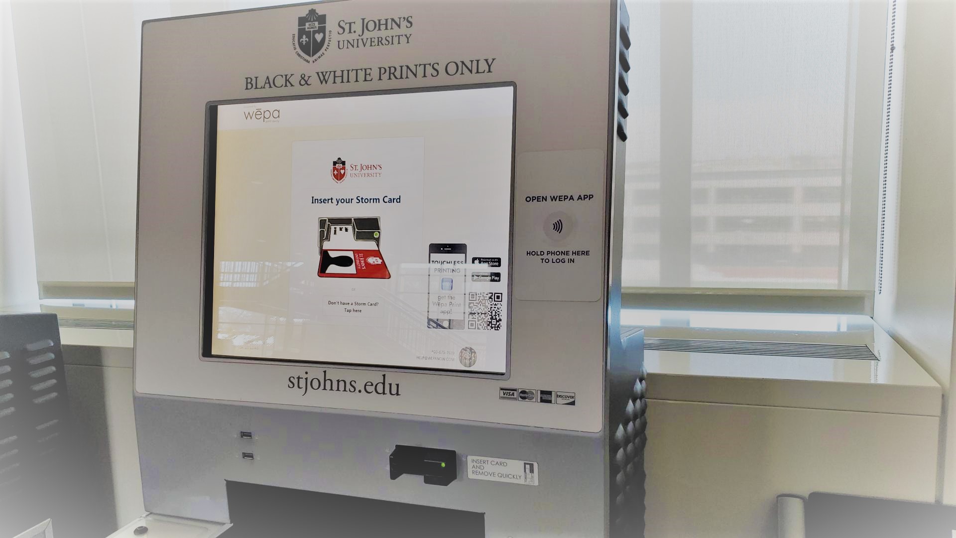 WEPA allows you to send your print jobs from on- or off-campus to the cloud and then release the print job at any of the stand-alone kiosks. You can send your print job from your desktop, laptop, or iOS/Android device. Or you can print from your USB key at a kiosk. One-sided or duplex printing options in color or black and white are available.