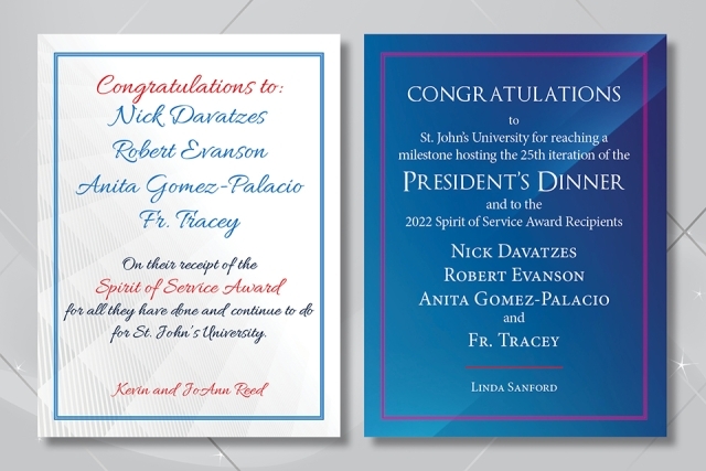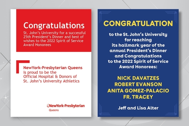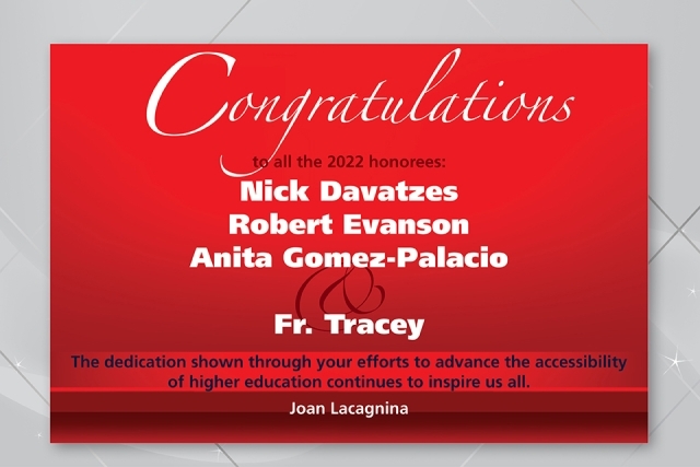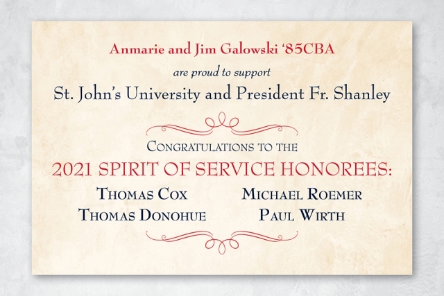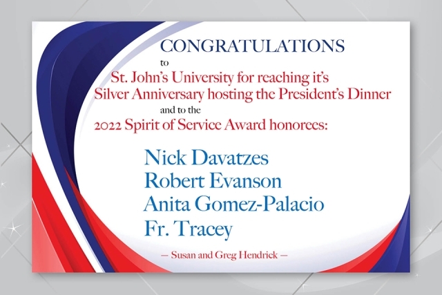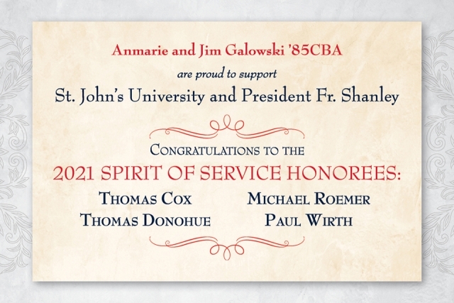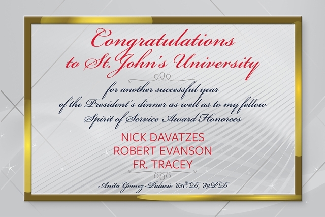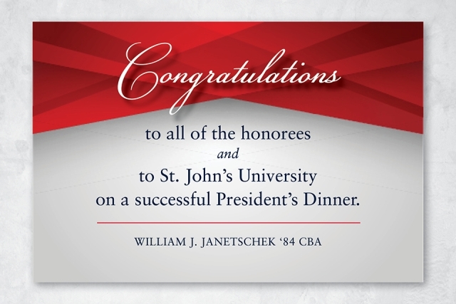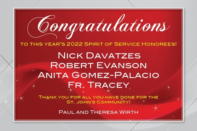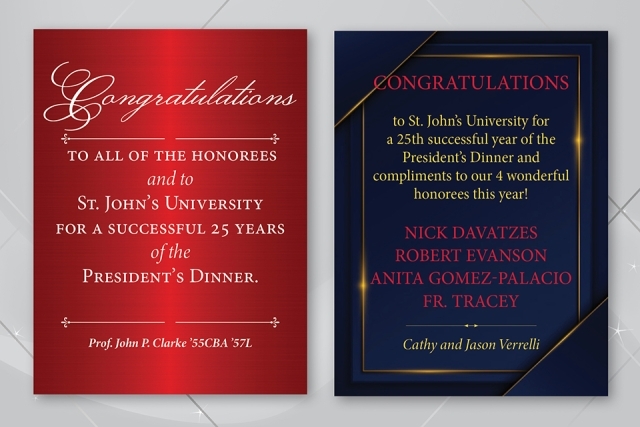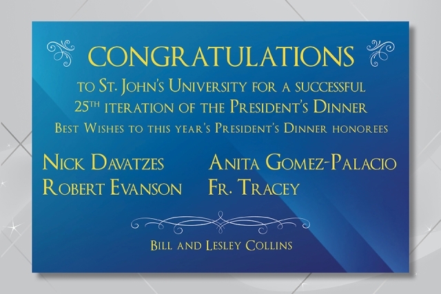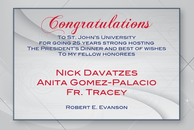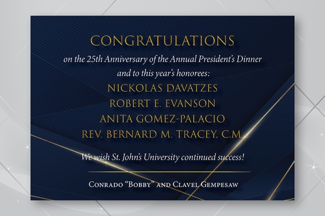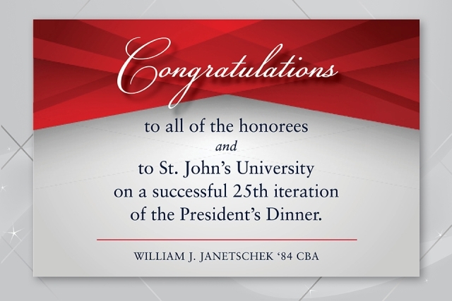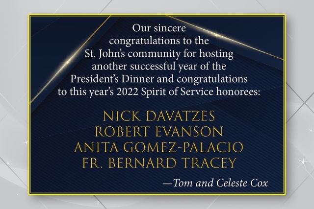 Funds raised from the President’s Dinner are used to support scholarship assistance for students who, because of economic burdens, might otherwise be unable to realize their dream of a St. John’s education.