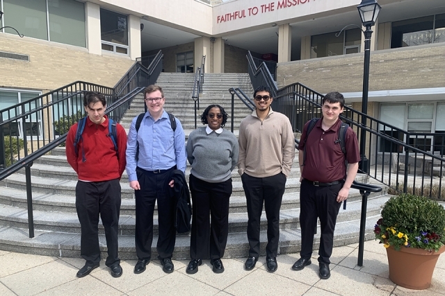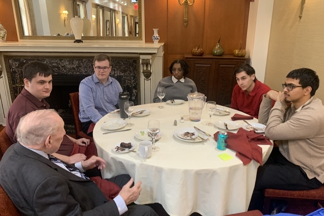 Five Endowed Scholarship recipients met with their scholarship donor, John “Jack” P. Clarke, Esq. ’55CBA, ’57L, Visiting Professor and Chair, Department of Law, The Peter J. Tobin College of Business, on April 8. The students, who are all in the five year graduate program, included Madison Able-South, Carmelo Acquista, John Pederson, Mark Sclafani, and Jermy Singh.