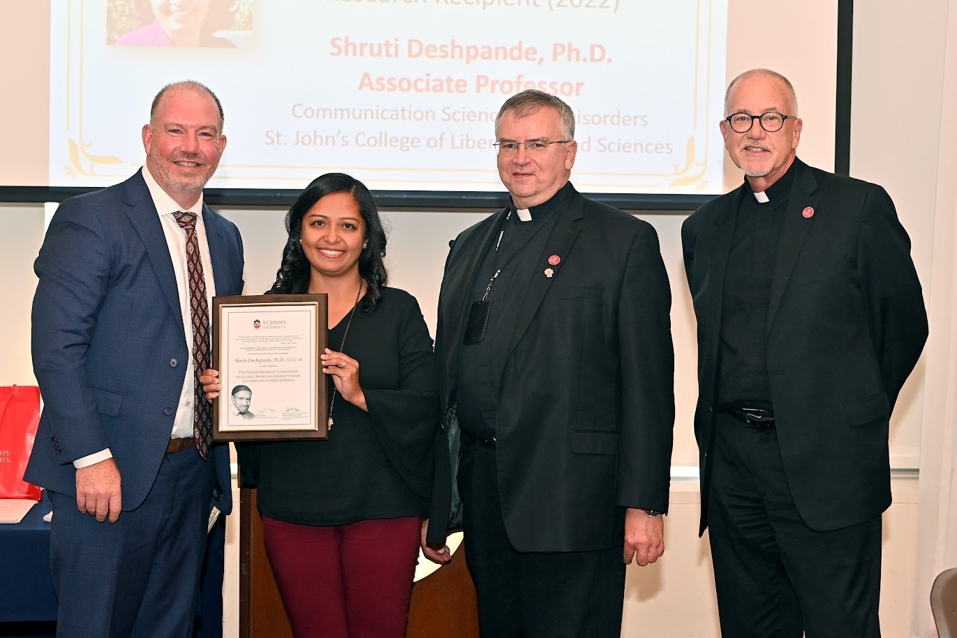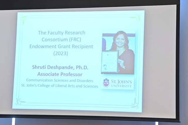 "Funding opportunities offered by the Faculty Research Consortium (FRC) have been critical for developing my sustainable research program centered around social justice and audiology. I highly encourage all St. John’s University faculty members to consider applying to the FRC sponsored grant opportunities. They certainly have been a foundation for meaningful, community-centered research." -Dr. Shruti Deshpande, Associate Professor, Communication Sciences & Disorders, St. John's College of Liberal Arts & Sciences