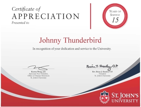 St. John’s University extends its gratitude and deep appreciation for the commitment and dedication of its employees. The Years of Service recognition program celebrates faculty, staff and administrators who achieve employment milestones with the University.